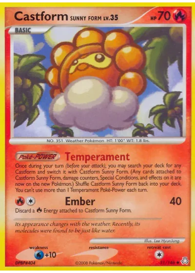 Discard a Fire Energy attached to Castform Sunny Form.