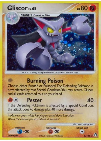 Choose either Burned or Poisoned. The Defending Pokémon is now affected by that Special Condition. You may return Gliscor and all cards attached to it to your hand.