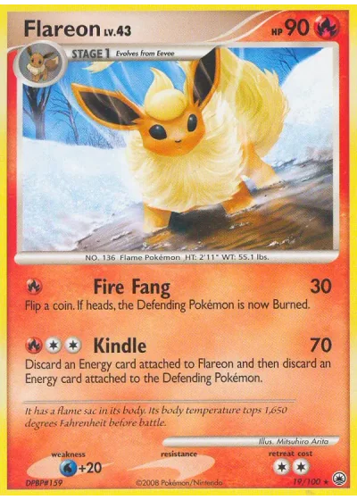 Discard an Energy card attached to Flareon and then discard an Energy card attached to the Defending Pokémon.