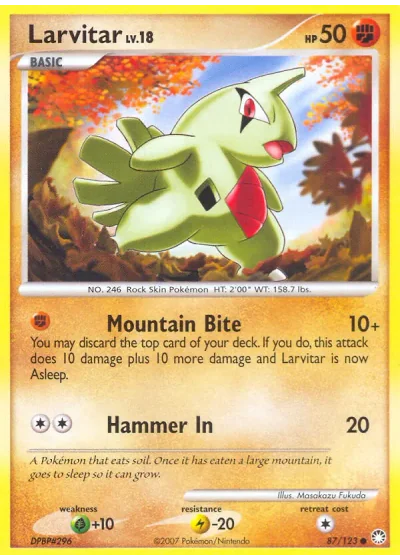 You may discard the top card of your deck. If you do, this attack does 10 damage plus 10 more damage and Larvitar is now Asleep.