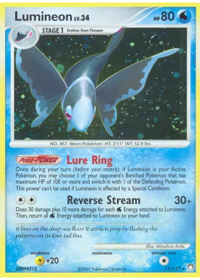 Does 30 damage plus 10 more damage for each Water Energy attached to Lumineon. Then, return all Water Energy attached to Lumineon to your hand.