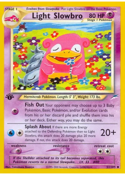If there are more Energy cards attached to the Defending Pokémon than to Light Slowbro, this attack does 20 damage plus 20 more damage. If not, this attack does 20 damage.