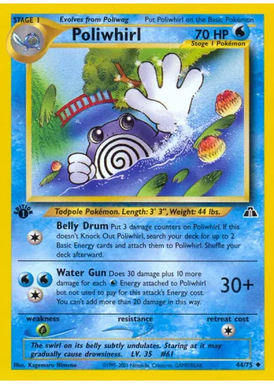 Put 3 damage counters on Poliwhirl. If this doesn't knock out Poliwhirl, search your deck for up to 2 Basic Energy cards and attach them to Poliwhirl. Shuffle your deck afterward.