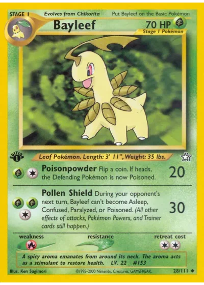 During your opponent's next turn, Bayleef can't become Asleep, Confused, Paralyzed, or Poisoned. (All other effects of attacks, Pokémon Powers, and Trainer cards still happen.)