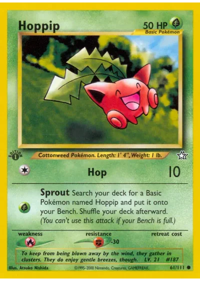 Search your deck for a Basic Pokémon named Hoppip and put it onto your Bench. Shuffle your deck afterward. (You can't use this attack if your Bench is full.)