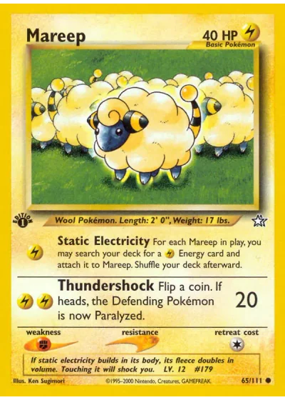 For each Mareep in play, you may search your deck for a Energy card and attach it to Mareep. Shuffle your deck afterward.