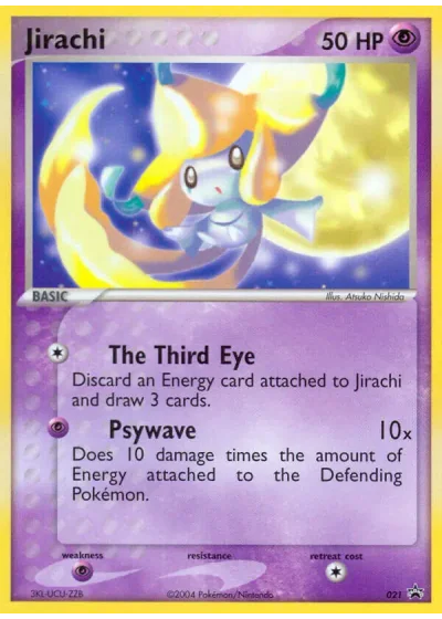Discard an Energy card attached to Jirachi and draw 3 cards.