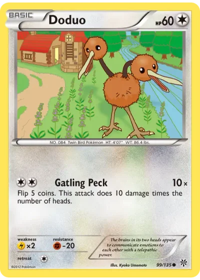Flip 5 coins. This attack does 10 damage times the number of heads.