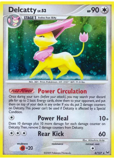 Does 10 damage plus 10 more damage for each damage counter on Delcatty. Then, remove 2 damage counters from Delcatty.