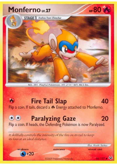 Flip a coin. If tails, discard a Fire Energy attached to Monferno.