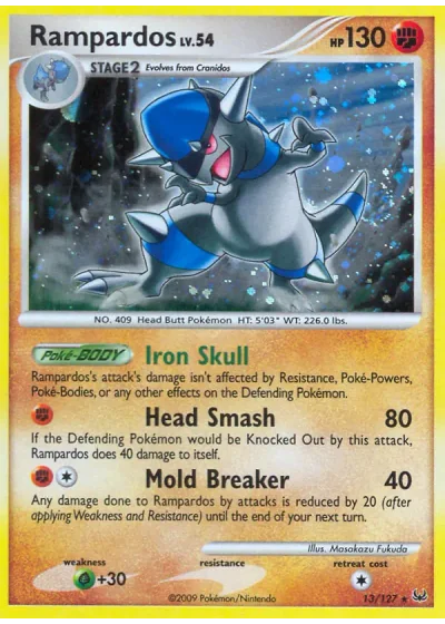 If the Defending Pokémon would be Knocked Out by this attack, Rampardos does 40 damage to itself.