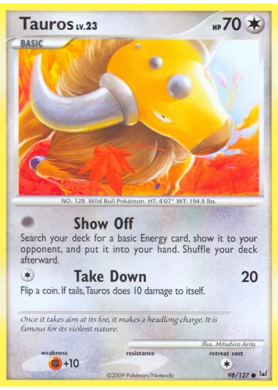 Flip a coin. If tails, Tauros does 10 damage to itself.