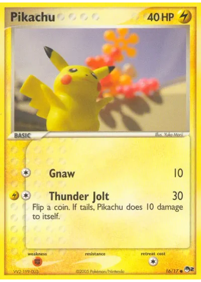 Flip a coin. If tails, Pikachu does 10 damage to itself.