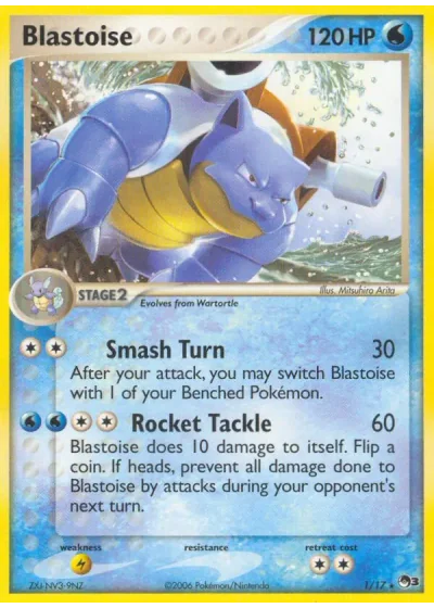 Blastoise does 10 damage to itself. Flip a coin. If heads, prevent all damage done to Blastoise by attacks during your opponent’s next turn.