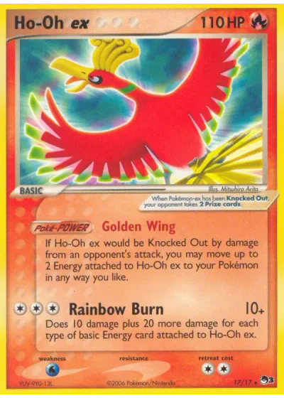 Does 10 damage plus 20 more damage for each type of basic Energy card attached to Ho-Oh ex.