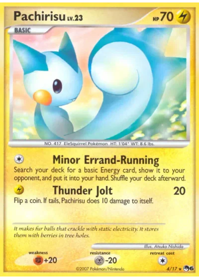 Flip a coin. If tails, Pachirisu does 10 damage to itself.