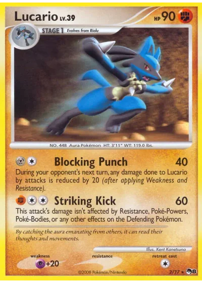 During your opponent’s next turn, any damage done to Lucario by attacks is reduced by 20 (after applying Weakness and Resistance).