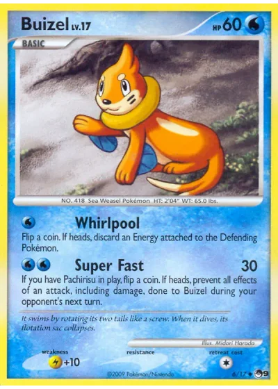 If you have Pachirisu in play, flip a coin. If heads, prevent all effects of an attack, including damage, done to Buizel during your opponent’s next turn.