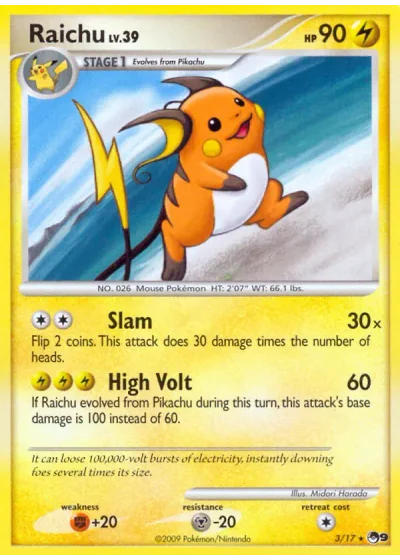If Raichu evolved from Pikachu during this turn, this attack’s base damage is 100 instead of 60.