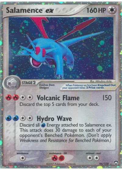 Discard all Water Energy attached to Salamence ex. This attack does 30 damage to each of your opponent's Benched Pokémon. (Don't apply Weakness and Resistance for Benched Pokémon.)