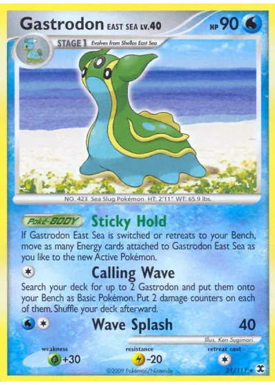 Search your deck for up to 2 Gastrodon and put them onto your Bench as Basic Pokémon. Put 2 damage counters on each of them. Shuffle your deck afterward.