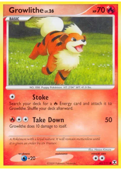 Search your deck for a Fire Energy card and attach it to Growlithe. Shuffle your deck afterward.