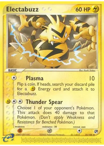 Flip a coin. If heads, search your discard pile for a Lightning Energy card and attach it to Electabuzz.