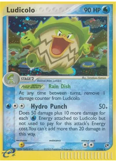 Does 50 damage plus 10 more damage for each Water Energy attached to Ludicolo but not used to pay for this attack's Energy cost. You can't add more than 20 damage in this way.