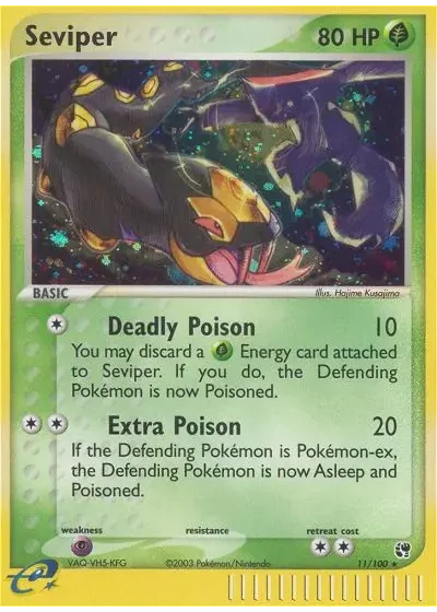You may discard a Grass Energy card attached to Seviper. If you do, the Defending Pokémon is now Poisoned.