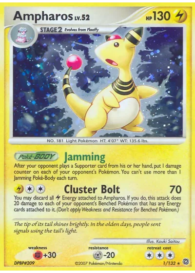 You may discard all Lightning Energy attached to Ampharos. If you do, this attack does 20 damage to each of your opponent's Benched Pokémon that has any Energy cards attached to it. (Don't apply Weakness and Resistance for Benched Pokémon.)