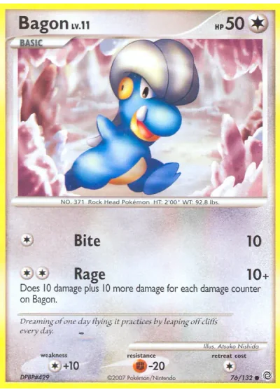 Does 10 damage plus 10 more damage for each damage counter on Bagon.
