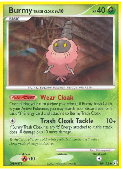 If Burmy Trash Cloak has any Metal Energy attached to it, this attack does 10 damage plus 10 more damage.