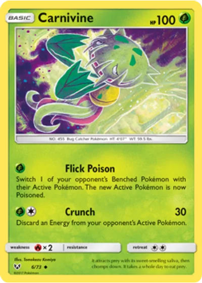 Switch 1 of your opponent’s Benched Pokémon with their Active Pokémon. The new Active Pokémon is now Poisoned.