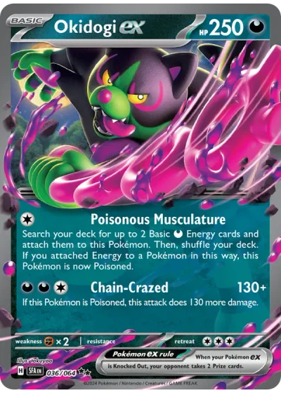 Search your deck for up to 2 Basic {D} Energy cards and attach them to this Pokémon. Then, shuffle your deck. If you attached Energy to a Pokémon in this way, this Pokémon is now Poisoned.