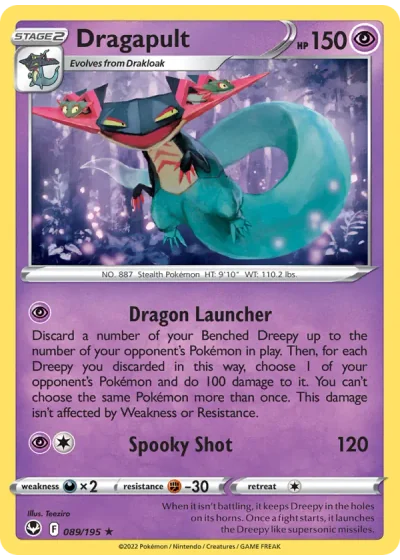 Discard a number of your Benched Dreepy up to the number of your opponent's Pokémon in play. Then, for each Dreepy you discarded in this way, choose 1 of your opponent's Pokémon and do 100 damage to it. You can't choose the same Pokémon more than once. This damage isn't affected by Weakness or Resistance.