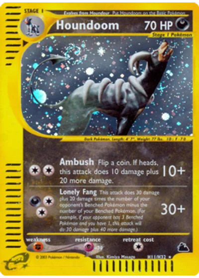 This attack does 30 damage plus 20 damage times the number of your opponent's Benched Pokémon minus the number of your Benched Pokémon. (For example, if your opponent has 3 Benched Pokémon and you have 1, this attack will do 30 damage plus 40 more damage.