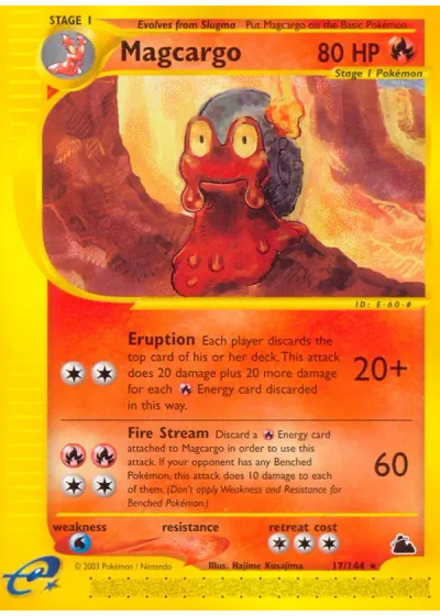 Discard a Energy card attached to Magcargo in order to use this attack. If your opponent has any Benched Pokémon, this attack does 10 damage to each of them. (Don't apply Weakness or Resistance for Benched Pokémon.)