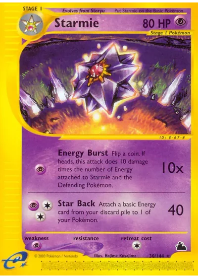 Flip a coin. If heads, this attack does 10 damage times the number of Energy cards attached to Starmie and the Defending Pokémon.