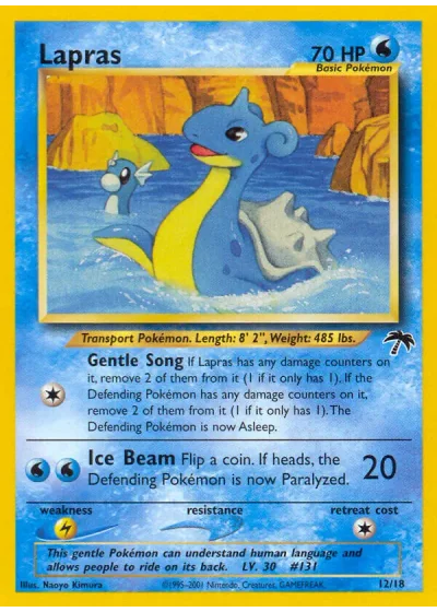 If Lapras has any damage counters on it, remove 2 of them from it (1 if it only has 1). If the Defending Pokémon has any damage counters on it, remove 2 of them from it (1 if it only has 1). The Defending Pokémon is now Asleep.