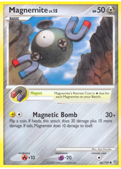 Flip a coin. If heads, this attack does 30 damage plus 10 more damage. If tails, Magnemite does 10 damage to itself.