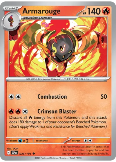 Discard all {R} Energy from this Pokémon, and this attack does 180 damage to 1 of your opponent's Benched Pokémon. (Don't apply Weakness and Resistance for Benched Pokémon.)