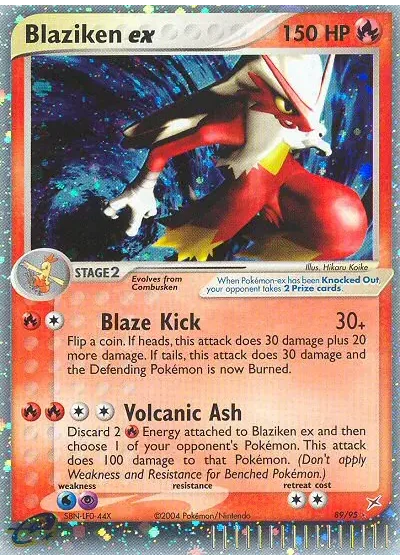 Discard 2 Fire Energy attached to Blaziken ex and then choose 1 of your opponent's Pokémon. This attack does 100 damage to that Pokémon. (Don't apply Weakness and Resistance for Benched Pokémon.)