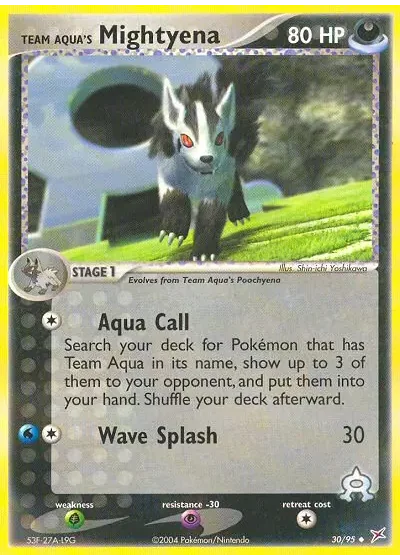 Search your deck for Pokémon that has Team Aqua in its name, show up to 3 of them to your opponent, and put them into your hand. Shuffle your deck afterward.