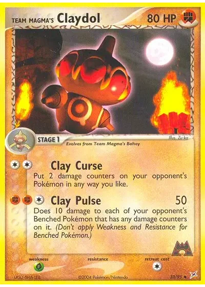 Does 10 damage to each of your opponent's Benched Pokémon that has any damage counters on it. (Don't apply Weakness and Resistance for Benched Pokémon.)