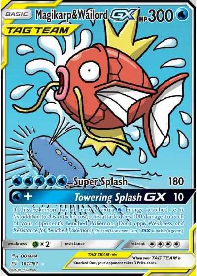 If this Pokémon has at least 7 extra Water Energy attached to it (in addition to this attack’s cost), this attack does 100 damage to each of your opponent’s Benched Pokémon. (Don’t apply Weakness and Resistance for Benched Pokémon.) (You can’t use more than 1 GX attack in a game.)