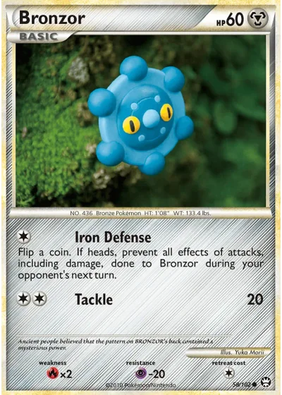 Flip a coin. If heads, prevent all effects of attacks, including damage, done to Bronzor during your opponent’s next turn.