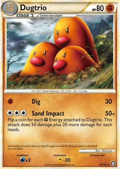 Flip a coin for each Fighting Energy attached to Dugtrio. This attack does 50 damage plus 20 more damage for each heads.