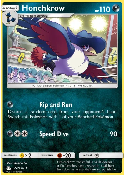 Discard a random card from your opponent’s hand. Switch this Pokémon with 1 of your Benched Pokémon.