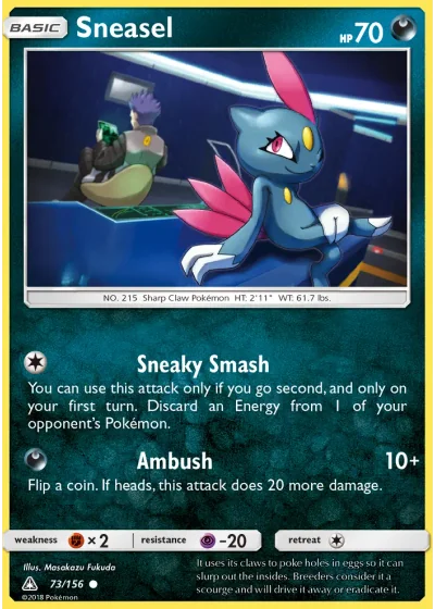 You can use this attack only if you go second, and only on your first turn. Discard an Energy from 1 of your opponent’s Pokémon.