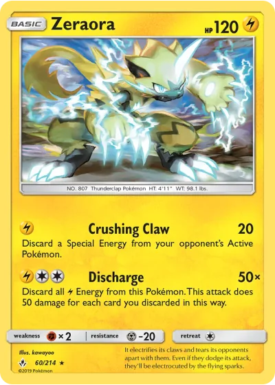 Discard all Lightning Energy from this Pokémon. This attack does 50 damage for each card you discarded in this way.
